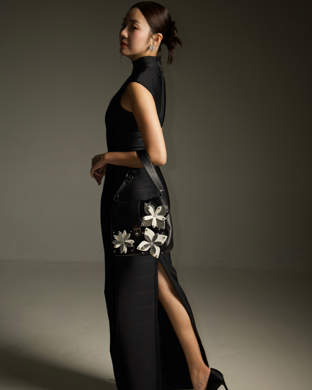 Structured yet fluid, this silhouette transitions seamlessly from workday to weekend, offering enough space for essentials—without sacrificing elegance. Refined metallic hardware pairs with hand-sculpted leather floral appliqués—each petal meticulously shaped to create depth and sculptural elegance, embodying LIAÜ’s signature balance of bold femininity and artisanal refinement.