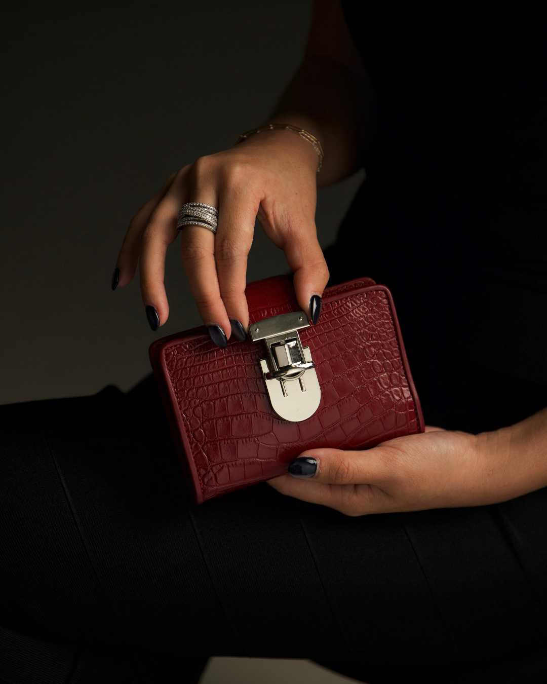 Crafted from premium croc-embossed calfskin leather and finished with our signature LIAÜ buckle, this piece is as polished as it is practical. Refined metallic hardware and a structured silhouette elevate the everyday, while its compact design keeps your most important essentials within reach.